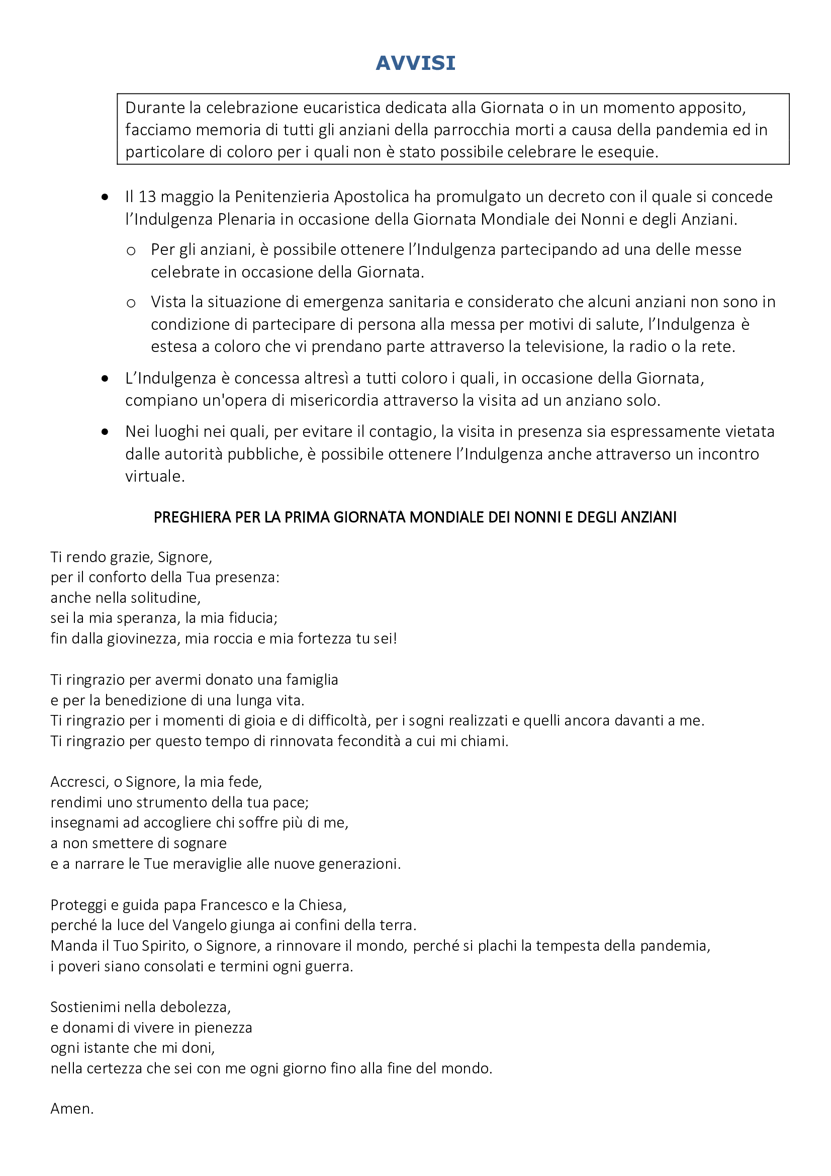 Avvisi domenica 25 luglio