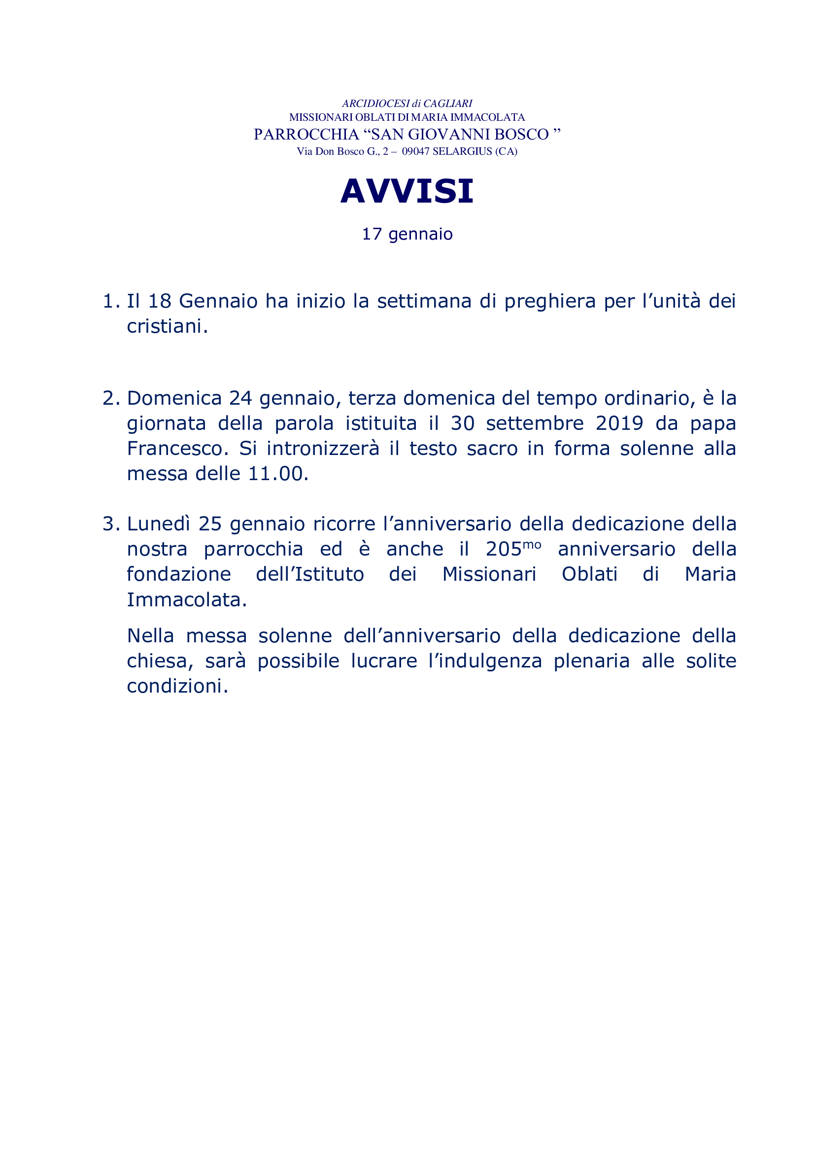 AVVISI II DOMENICA T.O.