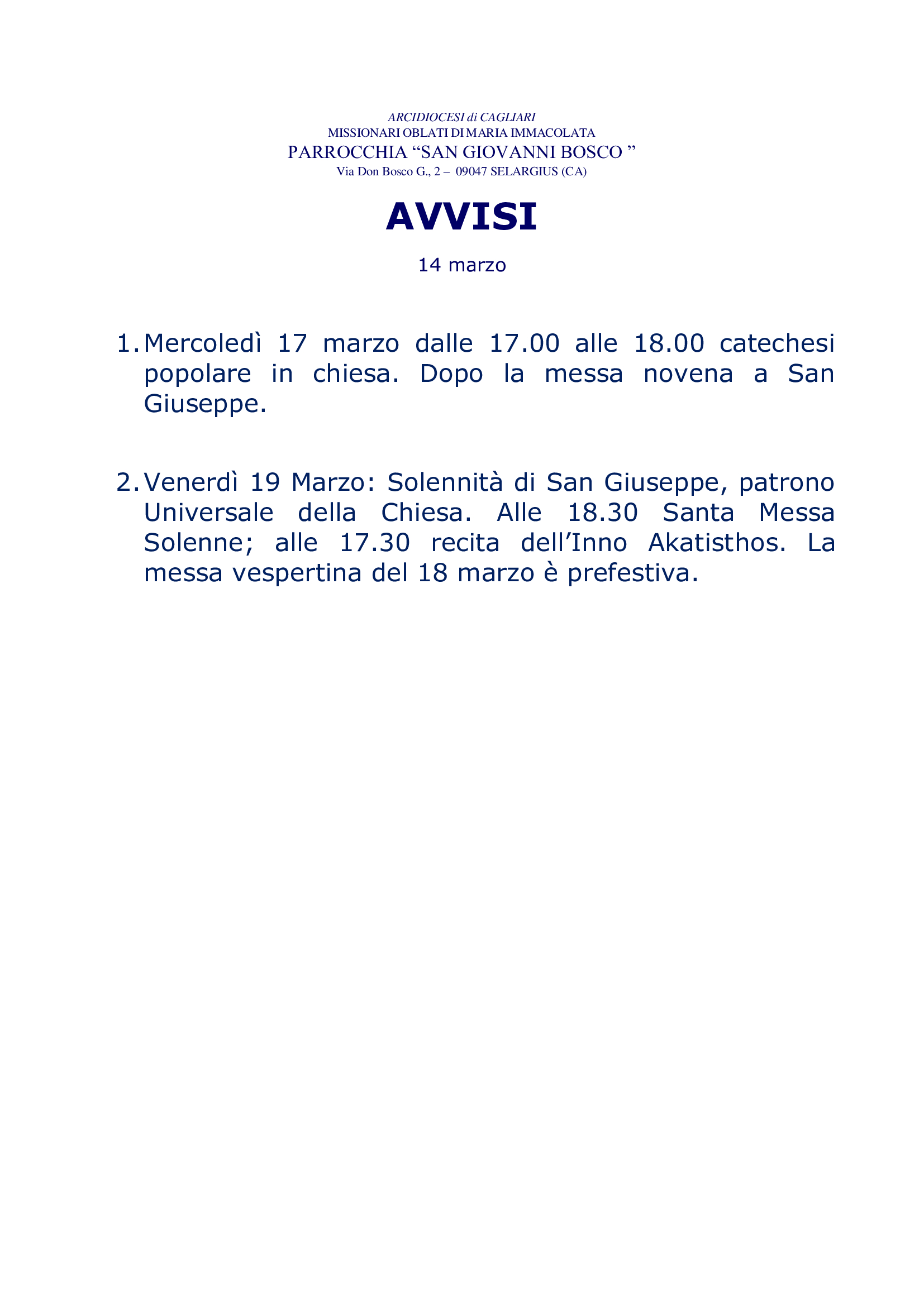 AVVISI IV DOMENICA DEL TEMPO DI QUARESIMA
