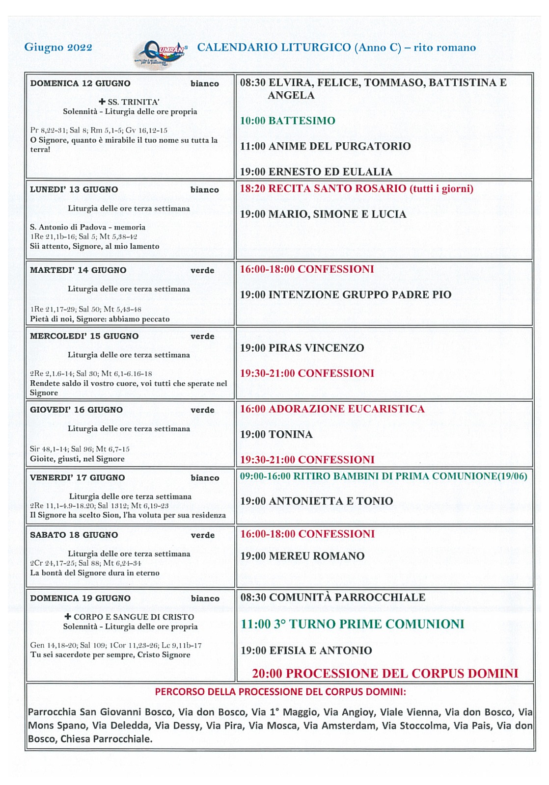 Calendario liturgico domenica 12 giugno, SS. Trinità Pubblicato giorno 12 giugno 2022 - Calendario liturgico, In home page