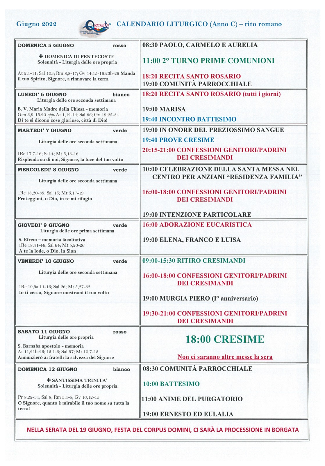 Calendario liturgico domenica di Pentecoste Pubblicato giorno 6 giugno 2022 - Calendario liturgico, In home page