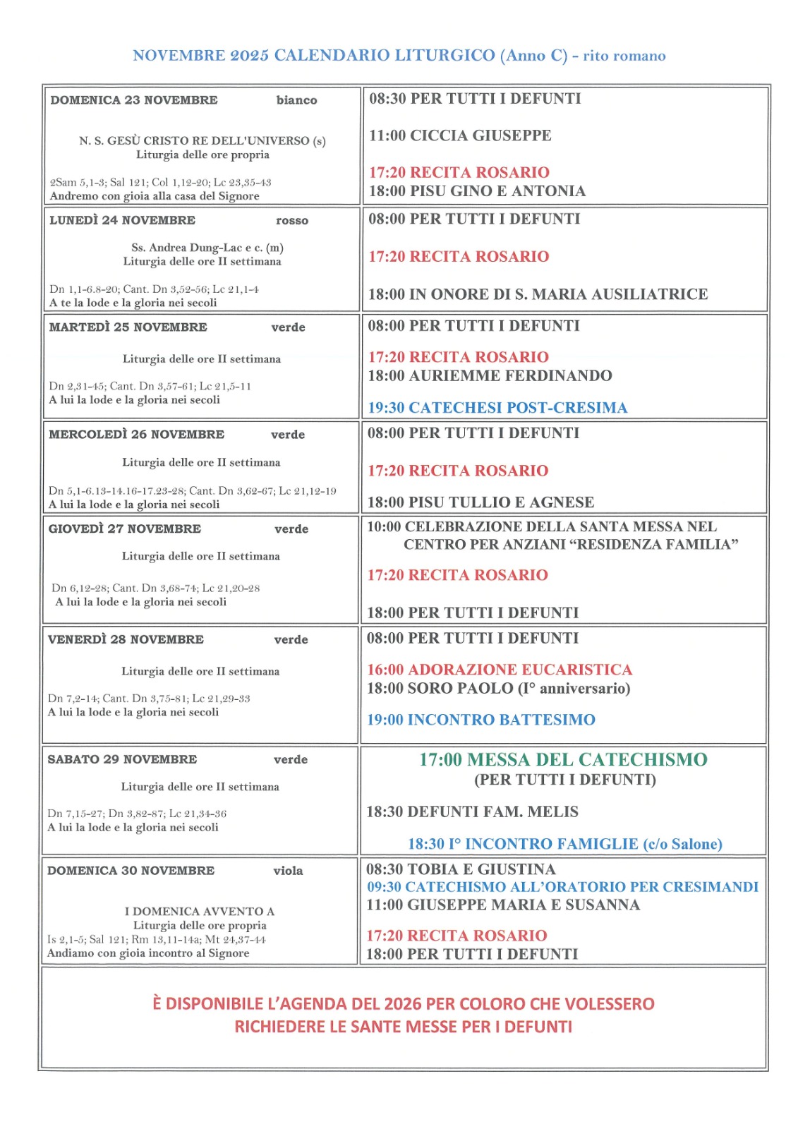 Calendario liturgico domenica ns. Signore Gesù Cristo Re Pubblicato giorno 22 novembre 2025 - Calendario liturgico, In home page