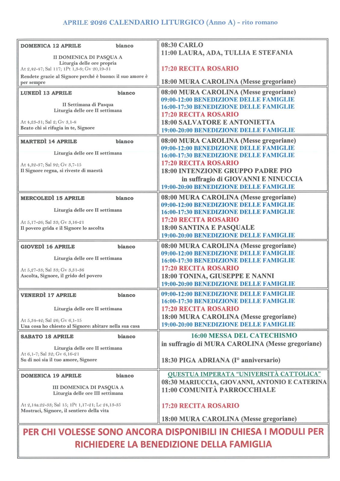 Calendario liturgico II domenica di Pasqua Pubblicato giorno 10 aprile 2026 - Calendario liturgico, In home page