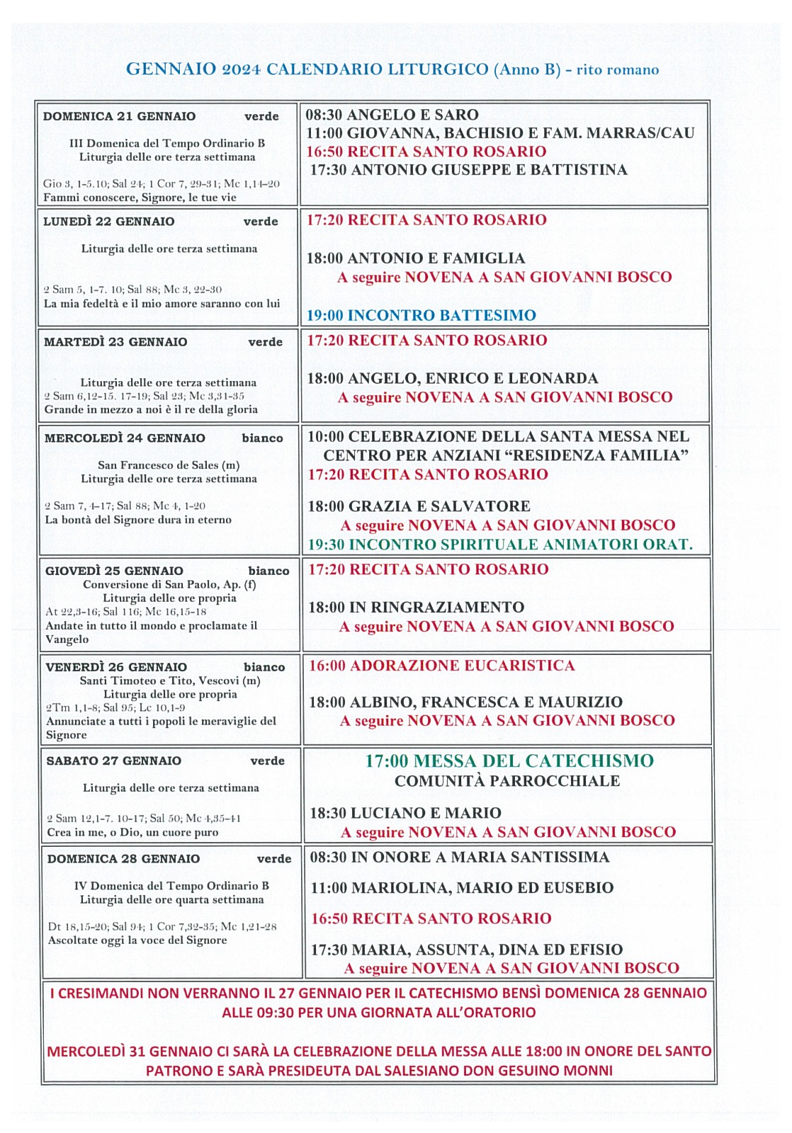Calendario liturgico III domenica del T.O. Pubblicato giorno 20 gennaio 2024 - Calendario liturgico, In home page