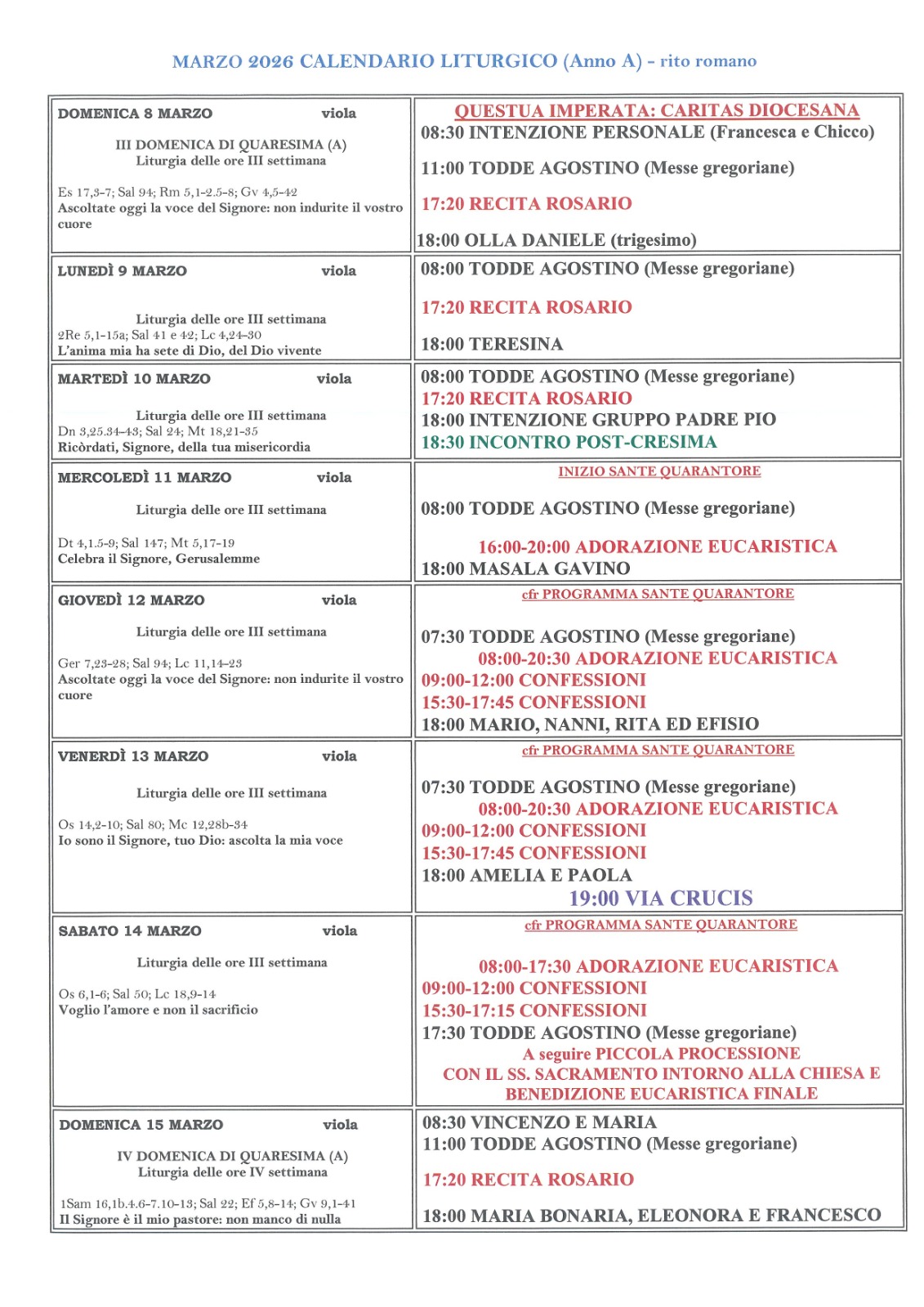 Pubblicato giorno 8 marzo 2026 - Calendario liturgico, In home page