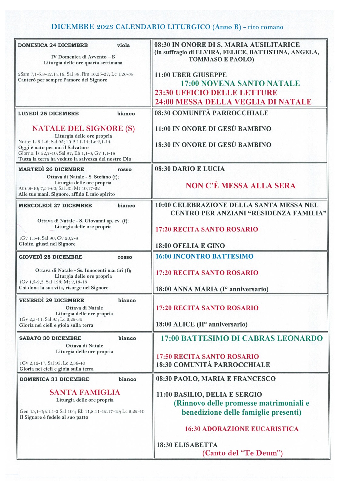 Calendario liturgico IV domenica di Avvento Pubblicato giorno 22 dicembre 2023 - Calendario liturgico, In home page