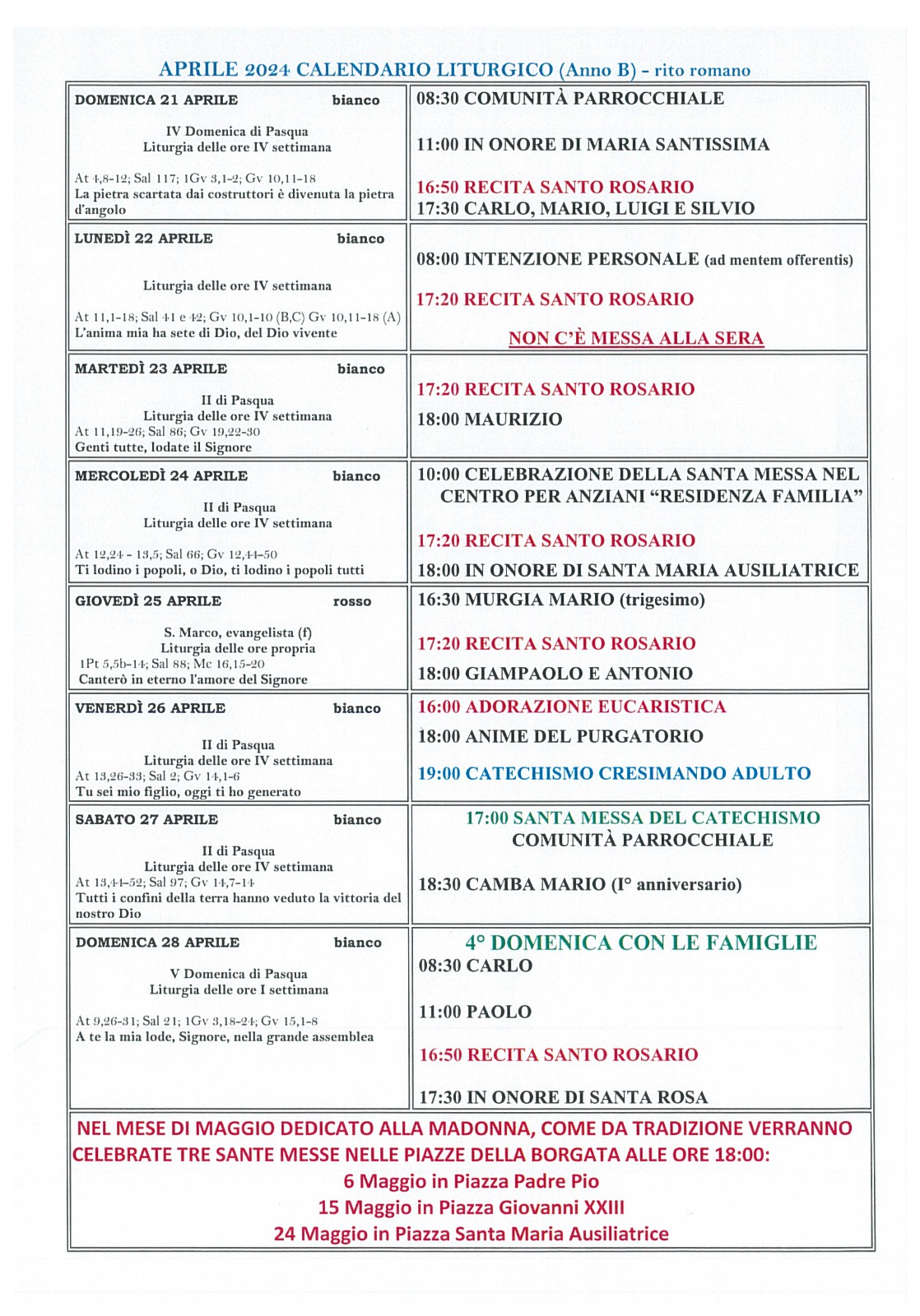 Calendario liturgico IV Domenica di Pasqua Pubblicato giorno 20 aprile 2024 - Calendario liturgico, In home page