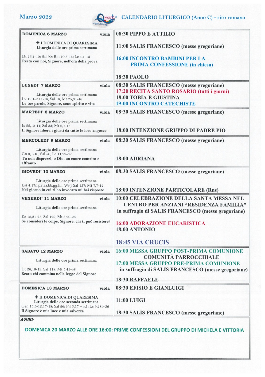 Calendario liturgico I domenica di Quaresima Pubblicato giorno 10 marzo 2022 - Calendario liturgico, In home page