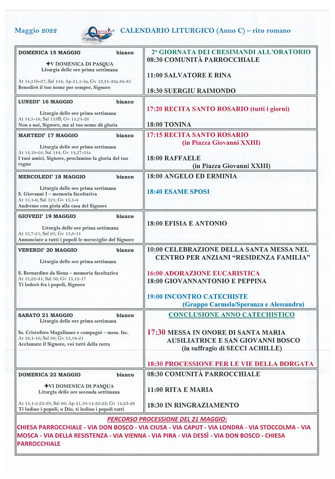 Calendario liturgico V domenica di Pasqua Pubblicato giorno 16 maggio 2022 - Calendario liturgico, In home page