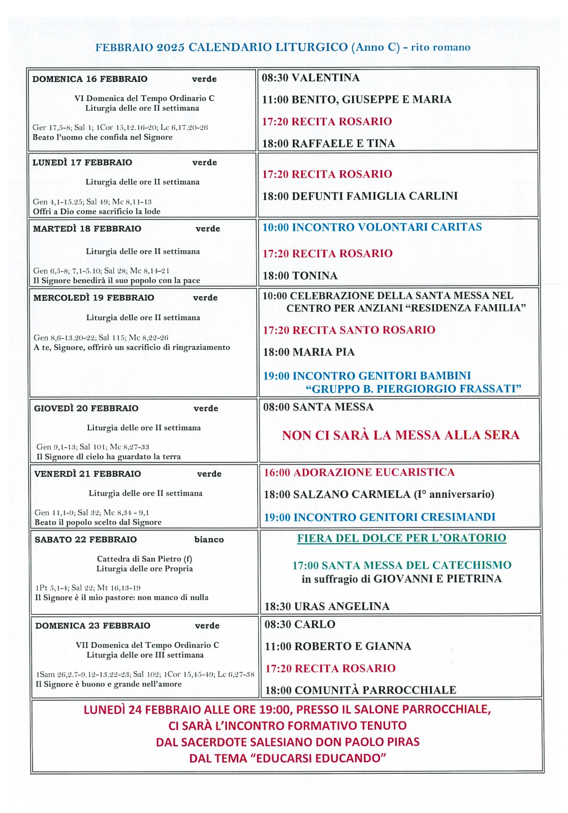 Calendario liturgico VI domenica del T.O. Pubblicato giorno 14 febbraio 2025 - Calendario liturgico, In home page