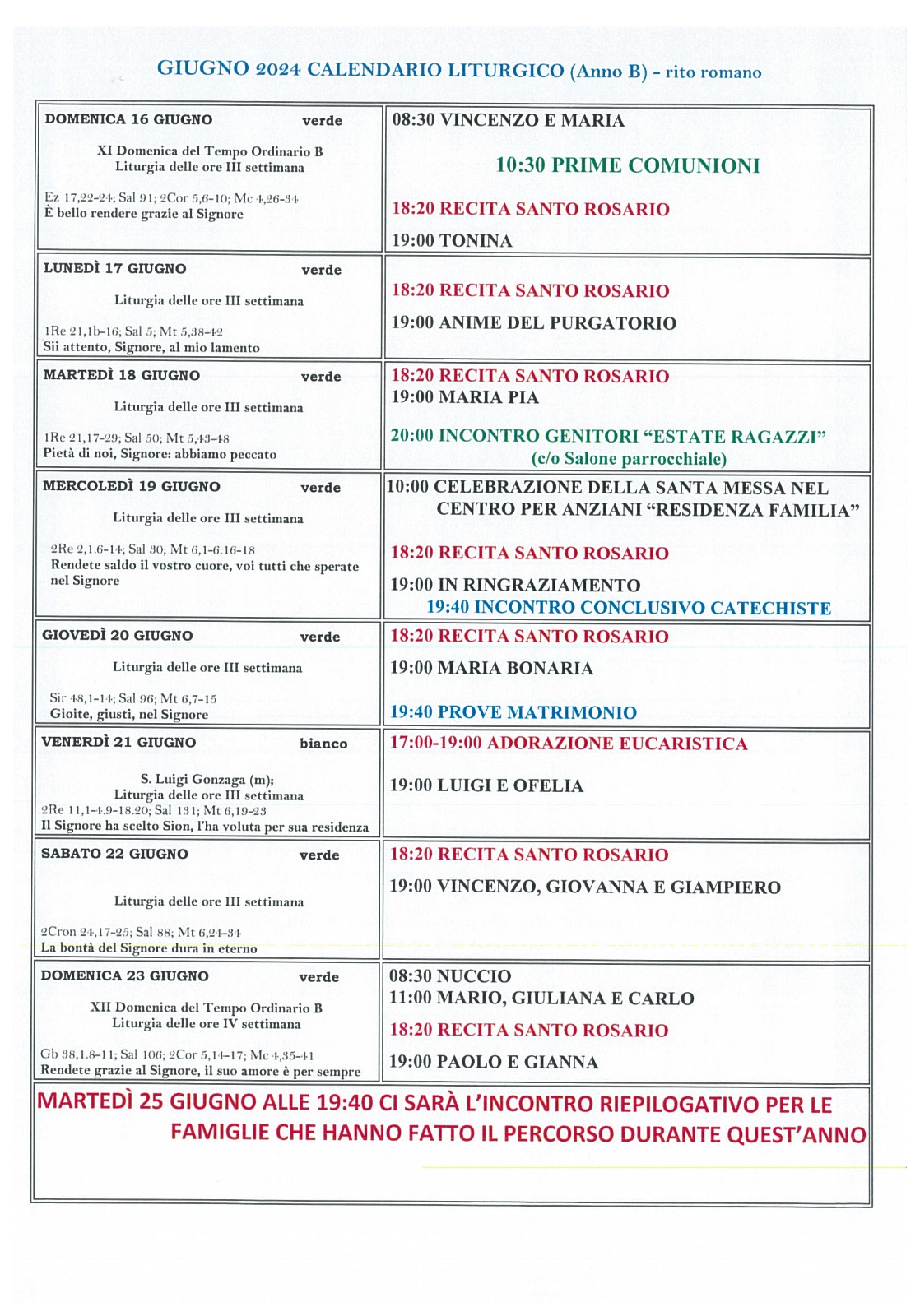 Calendario liturgico XI Domenica del T.O Pubblicato giorno 15 giugno 2024 - Calendario liturgico, In home page