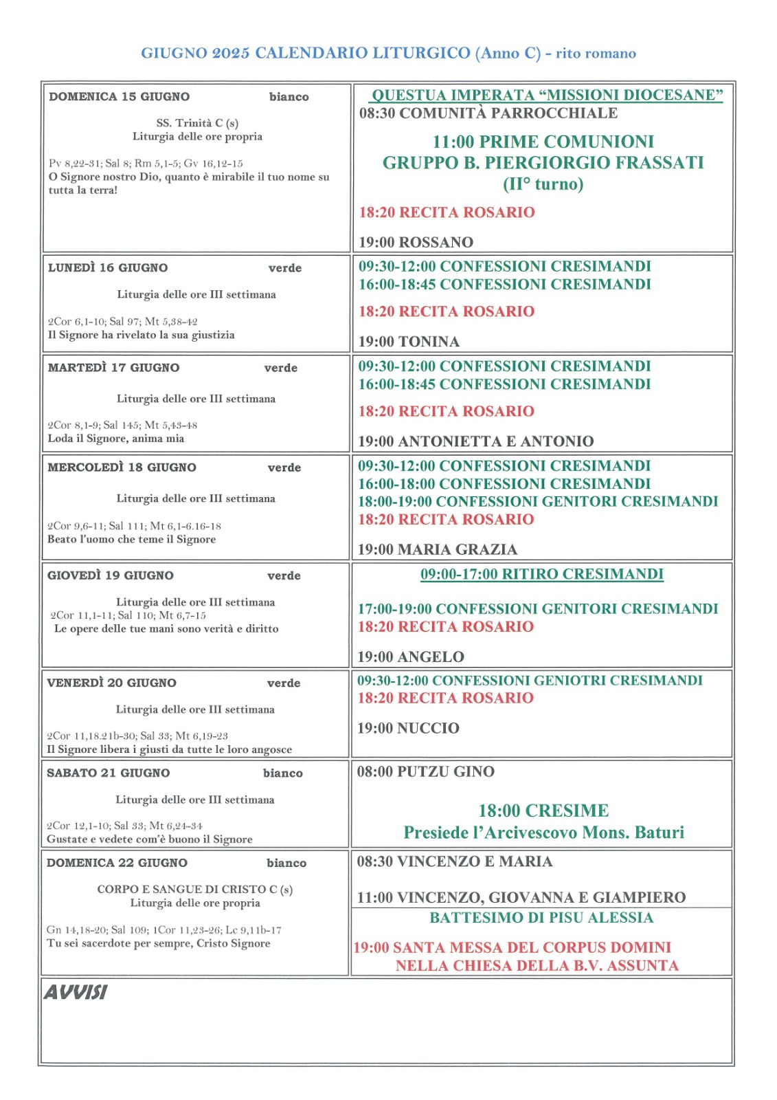 Calendario liturgico XI Domenica T.O. SS. TRINITÀ Pubblicato giorno 15 giugno 2025 - Calendario liturgico, In home page