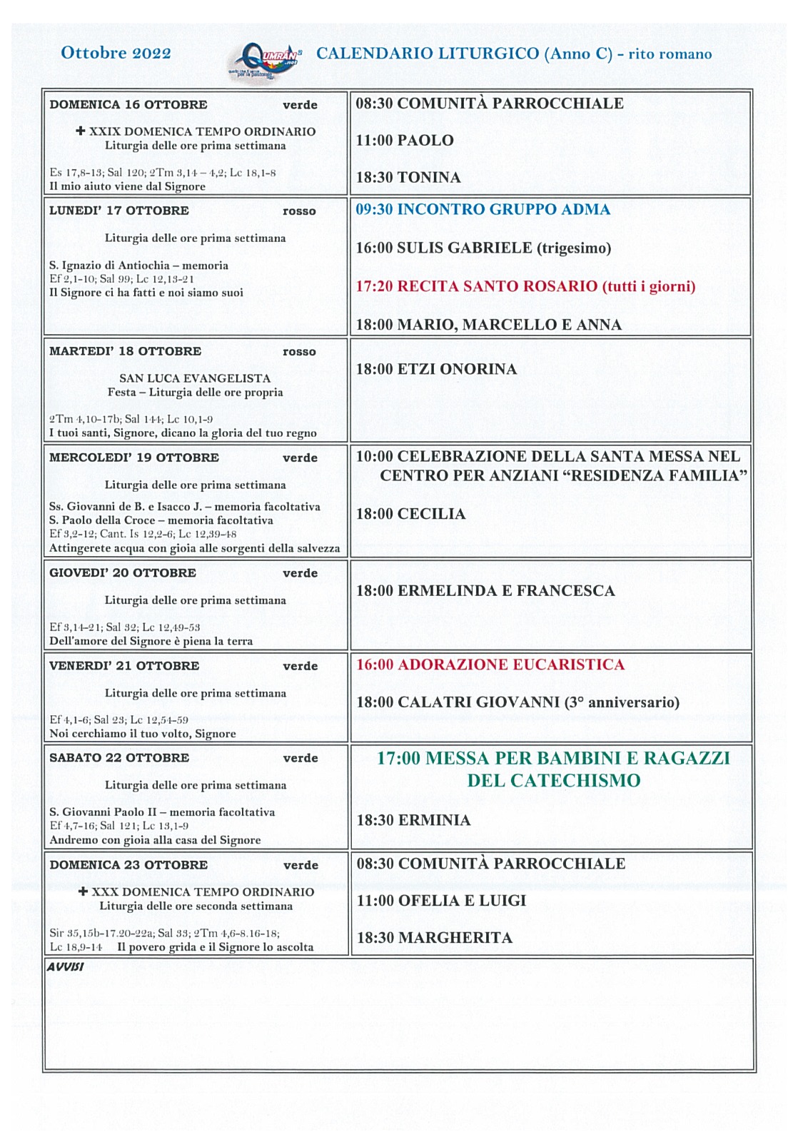 Calendario liturgico XXIX domenica del T.O. Pubblicato giorno 14 ottobre 2022 - Calendario liturgico, In home page