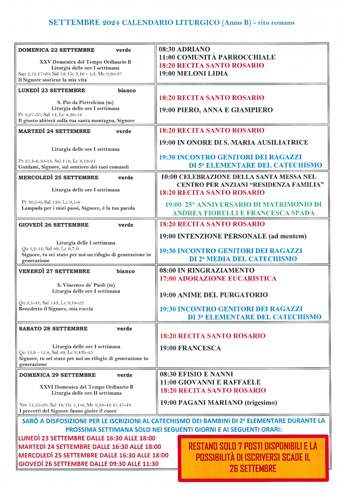 Calendario liturgico XXV Domenica del T.O. Pubblicato giorno 21 settembre 2024 - Calendario liturgico, In home page