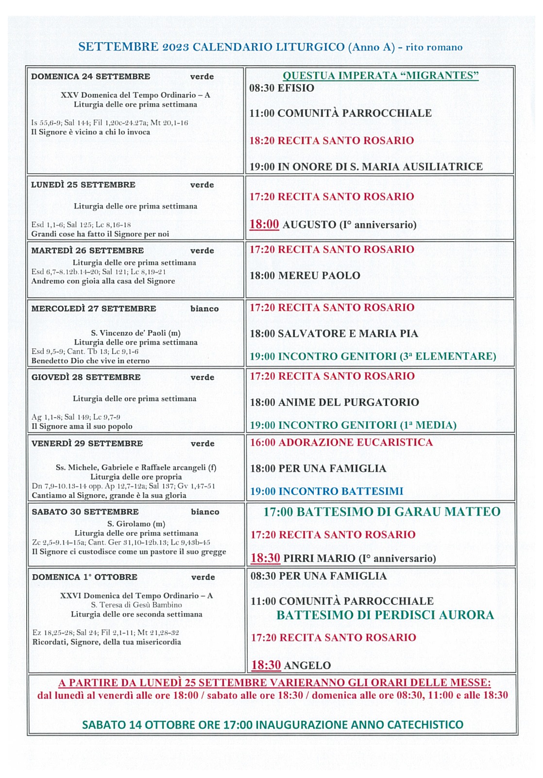 Calendario liturgico XXV domenica del tempo ordinario Pubblicato giorno 23 settembre 2023 - Calendario liturgico, In home page