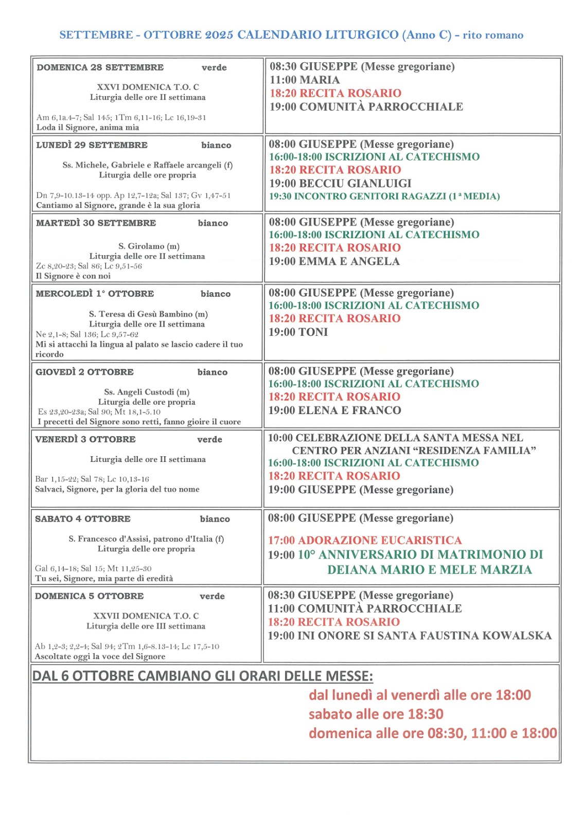Calendario liturgico XXVI domenica T.O. Pubblicato giorno 27 settembre 2025 - Calendario liturgico, in primo piano
