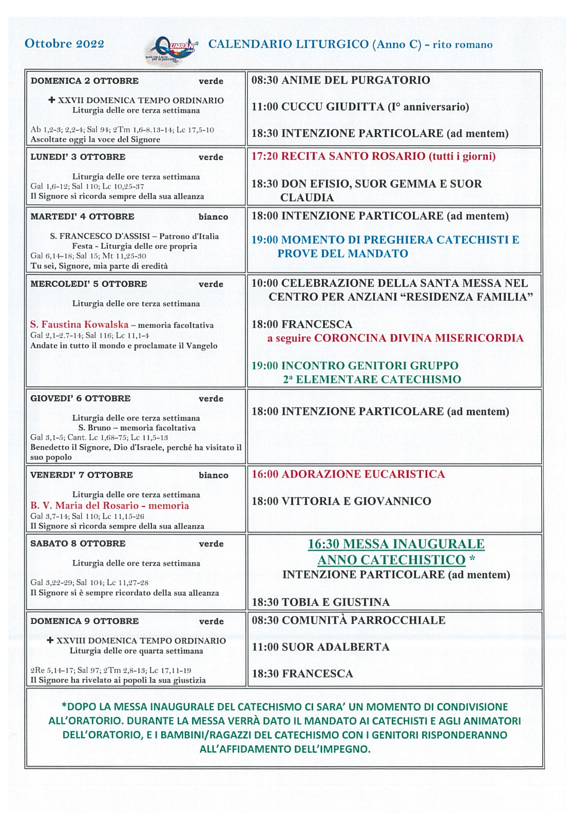 Pubblicato giorno 2 ottobre 2022 - Calendario liturgico, In home page