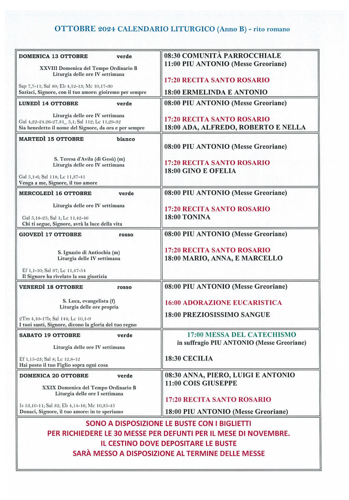 Calendario liturgico XXVIII Domenica del T.O. Pubblicato giorno 13 ottobre 2024 - Calendario liturgico, In home page
