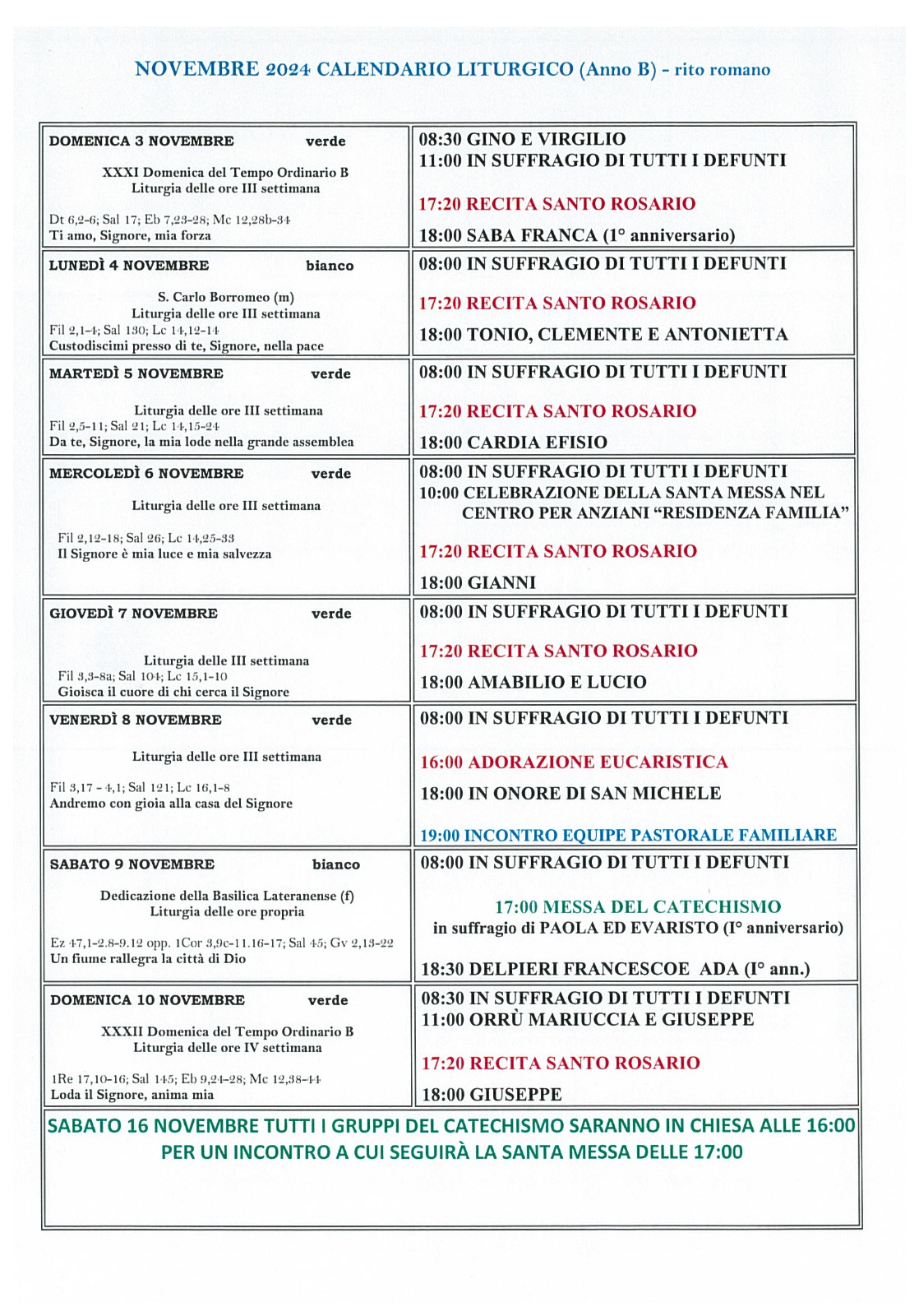 Calendario liturgico XXXI Domenica del T.O. Pubblicato giorno 3 novembre 2024 - Calendario liturgico, In home page