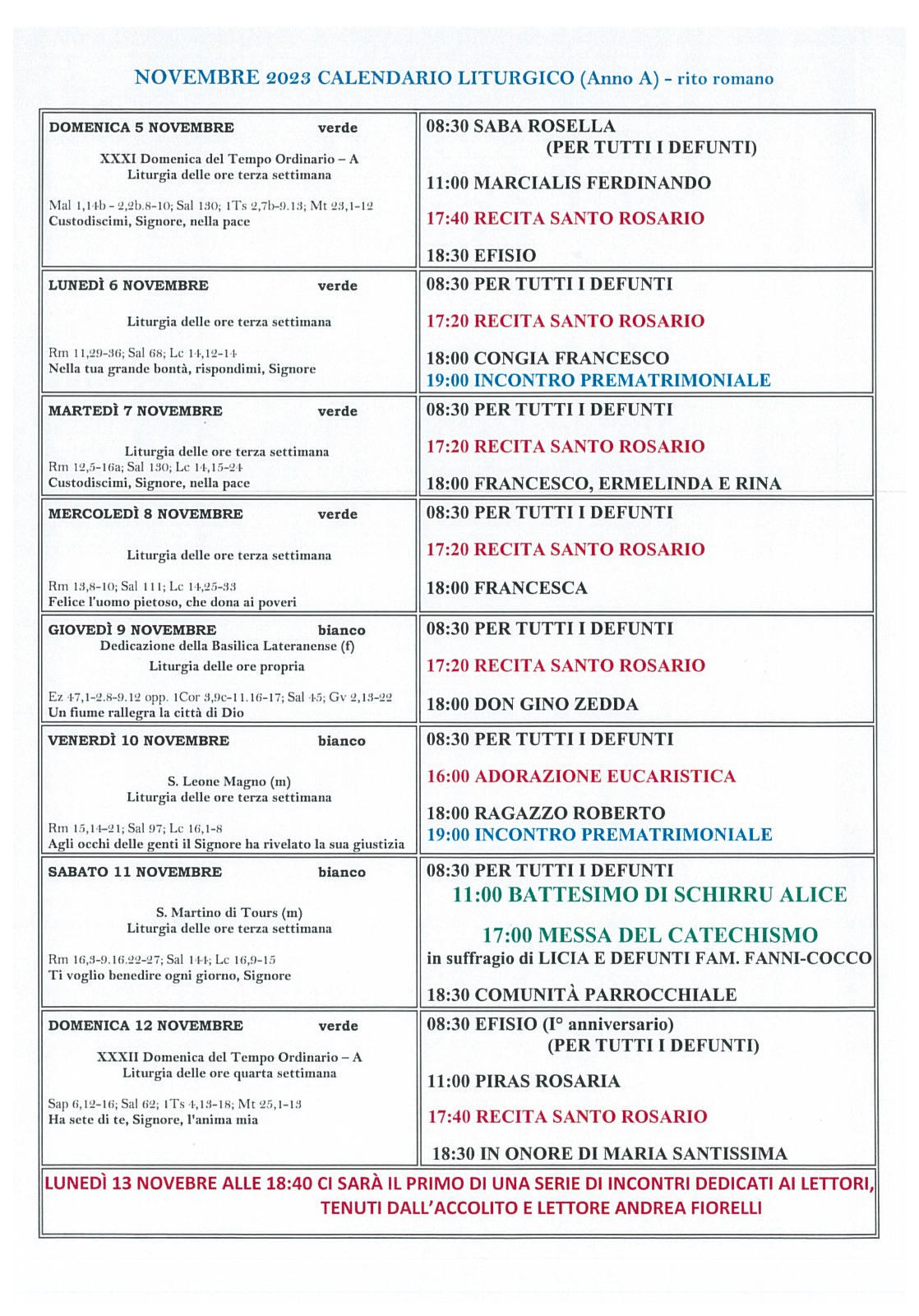Calendario liturgico XXXI domenica Pubblicato giorno 3 novembre 2023 - Calendario liturgico, In home page