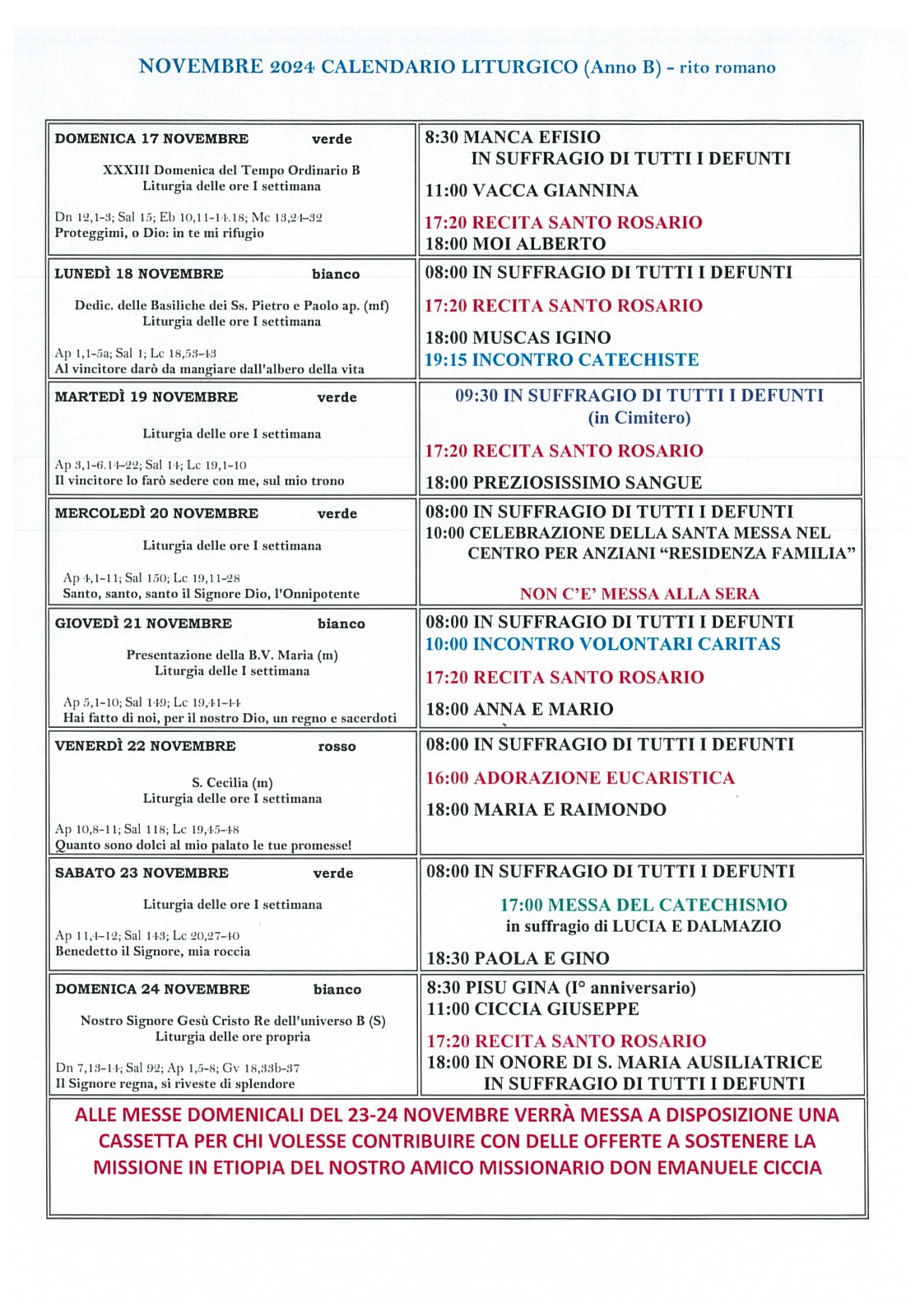 Calendario liturgico XXXIII Domenica del T.O. Pubblicato giorno 20 novembre 2024 - Calendario liturgico, In home page
