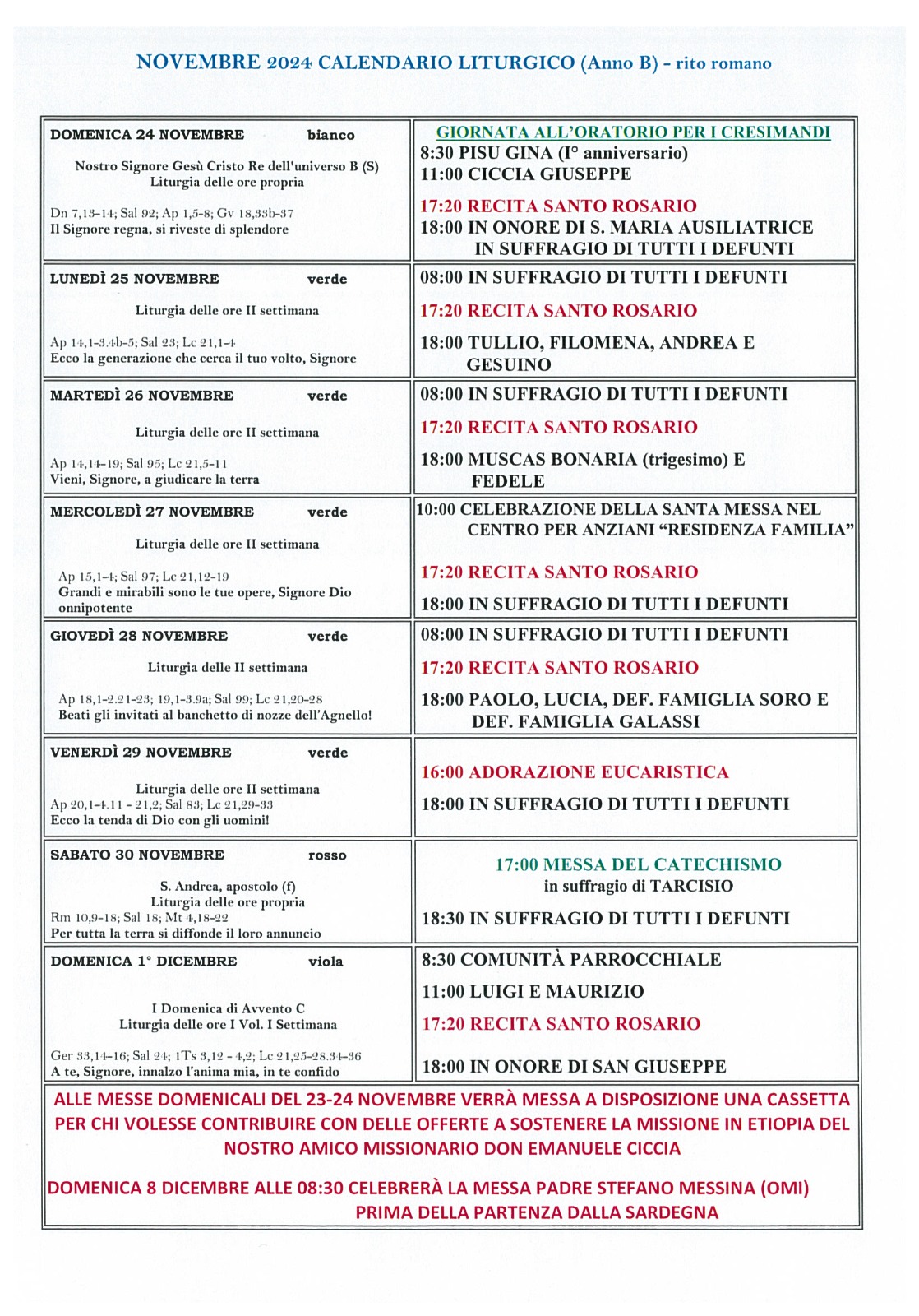 Pubblicato giorno 24 novembre 2024 - Calendario liturgico, In home page