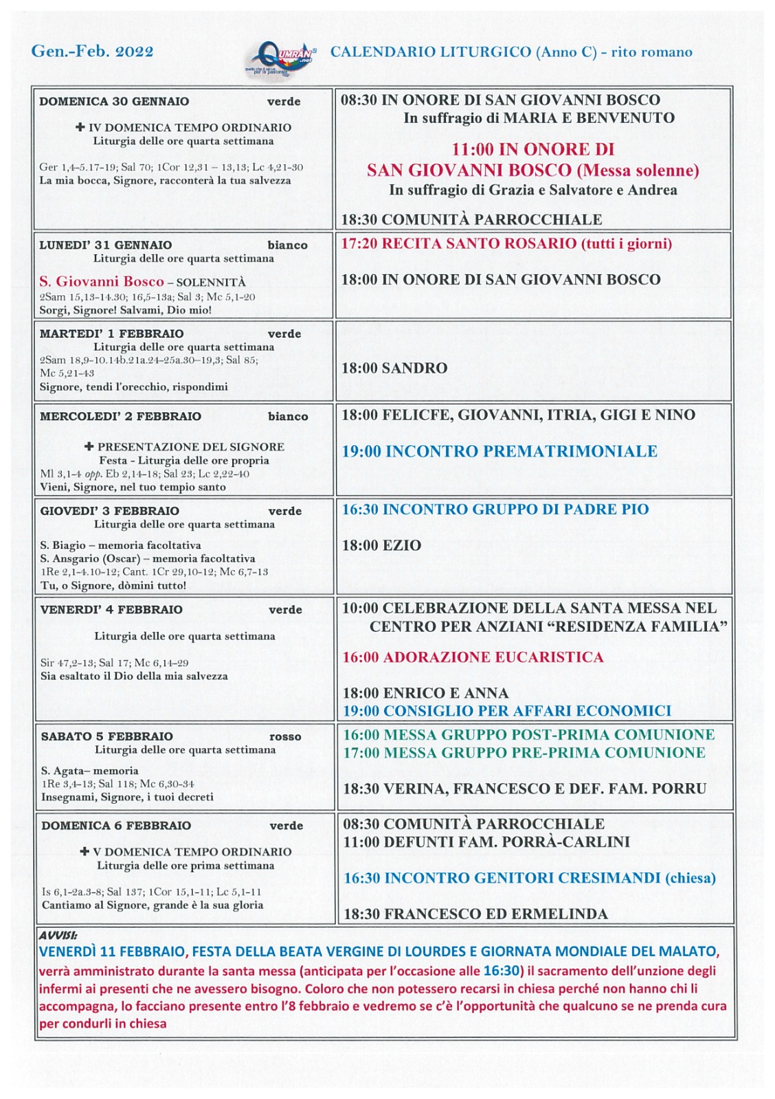 Calendario liturgico IV domenica del T.O. Pubblicato giorno 29 gennaio 2022 - Calendario liturgico, In home page